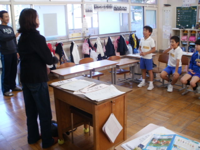 3年生が、「手話教室」をしました。これで、4回目目です。市内にお住まいの、Sさんから、耳の不自由な人は、どんな時に困るかや、言葉の代わりに使う手話について教えてもらっています。今回は、数字を指でどう表すか習いました。自分の誕生日を上手に手話で答えていました。