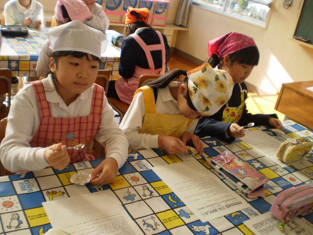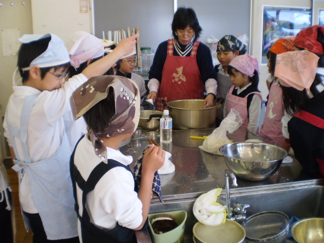 3年生は、国語で「すがたを変える大豆」という説明文を勉強しました。その中で、大豆が豆腐になることを、実際体験してみようということで、4年生の総合的な学習に一緒に参加しました。
