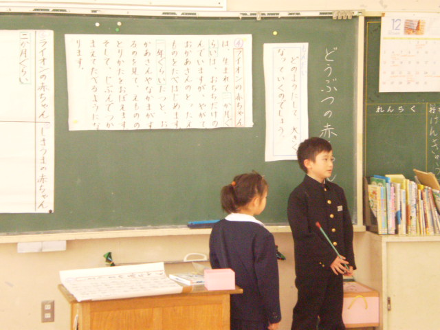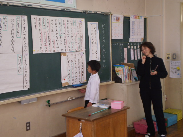 1年生が国語の研究授業をしました。県教育センターから、指導主事の先生を招き全教職員で国語「どうぶつの赤ちゃん」の授業を参観し協議しました。
