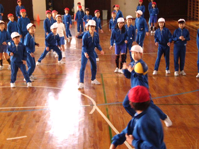 体育委員会が、計画して全校を赤白2つに分け対戦しました。準備運動を終えたら、まず、一つのボールでゲームをしました。6年生のボールは、スピードがあり低学年は当たらないように必死で逃げていました。後半は、ボールが2つに増え、常にボールを確認しながら動かないといけないので素早く動いていい汗をかきました。