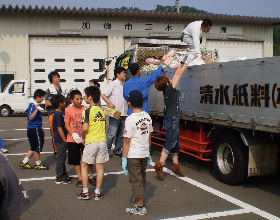 4日(土)早朝、資源回収をしました。毎年6月と10月の2回実施しています。PTAと児童が一緒になって親子で参加し、一生懸命汗を流し頑張りました。高学年は、新聞・雑誌を高いトラックに運びました。低学年はアルミ缶を袋に入れたり酒やビール瓶を箱に入れるお手伝いをしました。例年より資源がたくさん集まったように思います。