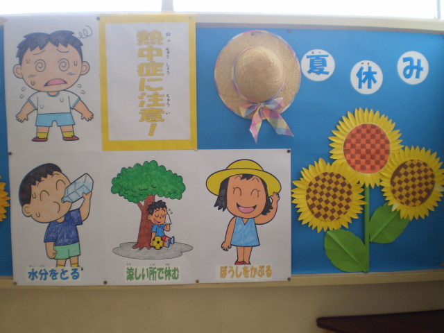 最後に、45日間の長いお休みの間、事故や怪我がないように、下記の4つの字をカードに大きく書いて、話しました。これらを守って、また、2学期には元気に会いましょうと約束しました。