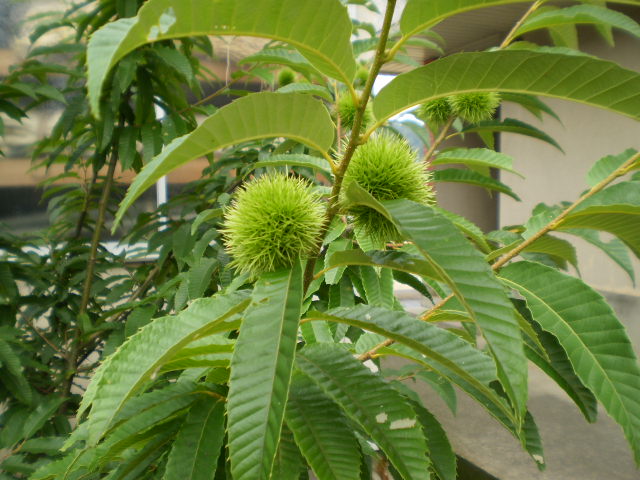 2階から、紐を吊るしたおかげで、まるでグリーンカーテンが現れました。