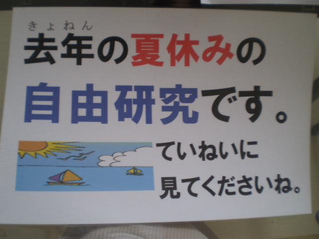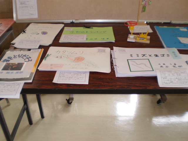 昨年の夏休み自由研究作品が、児童玄関に展示してあります。
