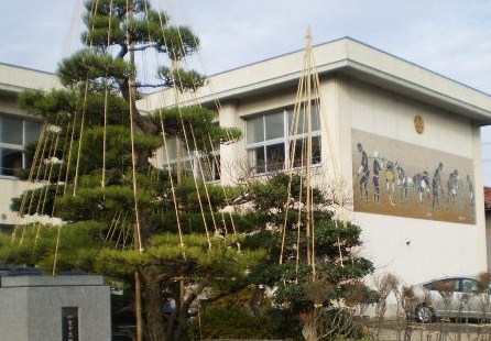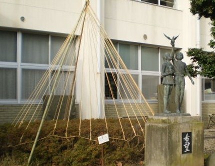校庭の木の葉もすっかり落ち、今は雪づりが施されています。雪の重みで木が折れないよう、北陸独特の風物詩です。