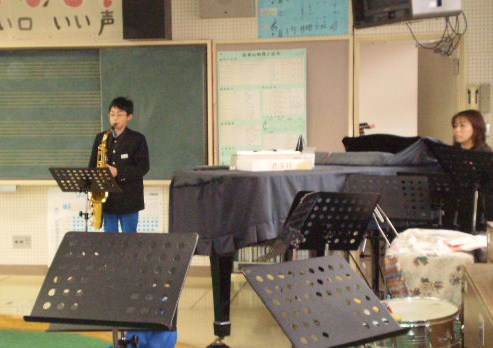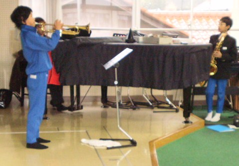明日は、加賀市ソロコンテストの本選会があります。三木小学校からは、6年生2人が出場します。今日の昼休みに、音楽室で、全校の前でリハーサルをしました。アルトサックスのTさんも、トランペットのYさんも、今までで一番上手に演奏でき、みんなから激励の拍手をもらいました。明日は、全力を出し切り、がんばってほしいです。