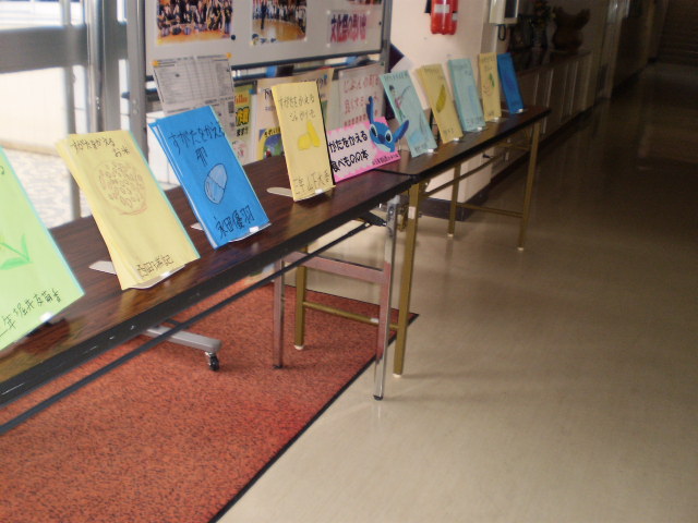 3年生は「すがたを変える大豆」という説明文の学習をしました。大豆が納豆、しょうゆ、味噌など食べ方をいろいろ工夫してすがたを変えていることが分かりました。そこで、自分たちも「すがたを変える○○」を調べ、絵本にまとめました。玄関前に展示しみんなに見てもらっています。とうもろこし、じゃがいも、麦などが姿をいろいろ変えて食べられていて驚きます。