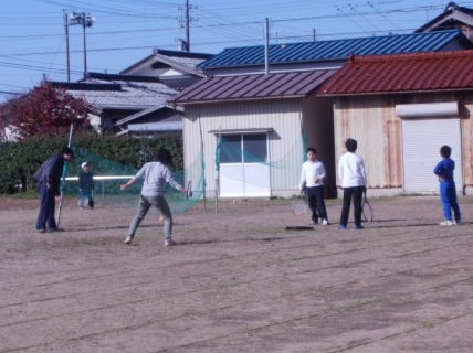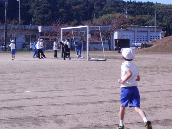 高学年のサッカーに混ぜてと急ぐ2年生 先生とテニス楽しいな