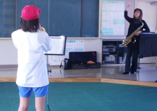 市立図書館の「かもまる号」が玄関に来ると、子どもたちは、絵本バッグを持って嬉しそうに借りに行きました。 音楽室からは、ソロコンテストに向けて3人の子が、三木町のT先生からレッスンを受けています。