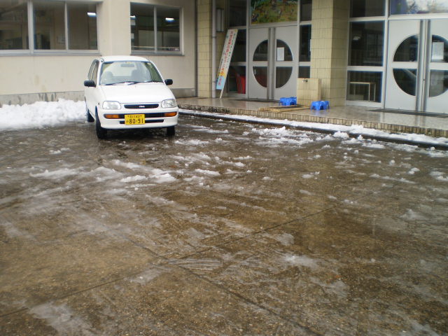 早めに学校に到着したら、すでに玄関前が綺麗に除雪してありました。