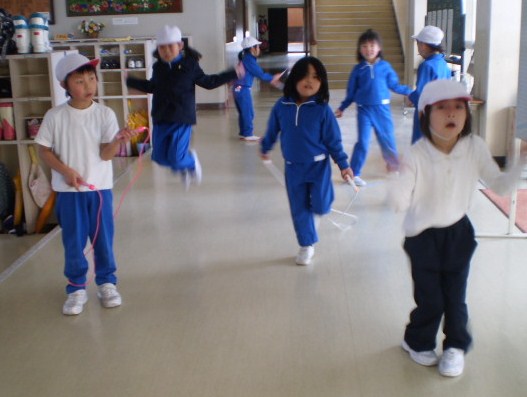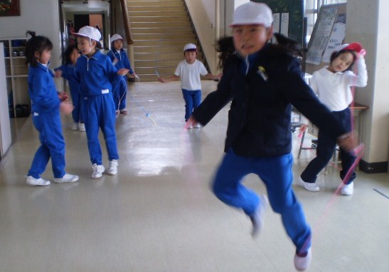 寒くて外遊びができないこの時期に、室内で手ごろにできる縄跳びは、体力作りにもってこいです。とくに1年生が頑張って跳んでいました。中には二重跳びが30回できる凄い1年生もいました。これからも、毎日続けられるよ励まして行きたいと思います。