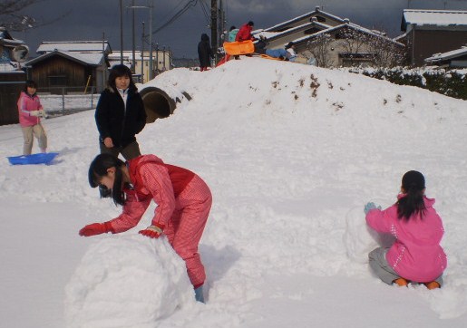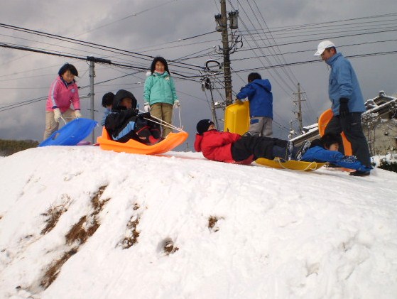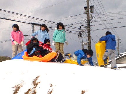 運動場に20センチほどの雪が積もりました。晴れ間を利用して、早速雪遊びを楽しみました。学校にあるソリで、築山のてっぺんから滑り降りるスリルにみんな歓声をあげて楽しんでいました。フワフワの新雪なので、雪だるまも簡単に作れました。