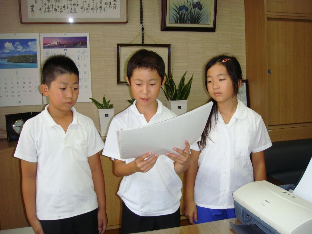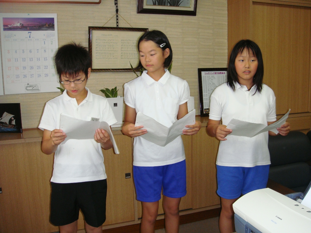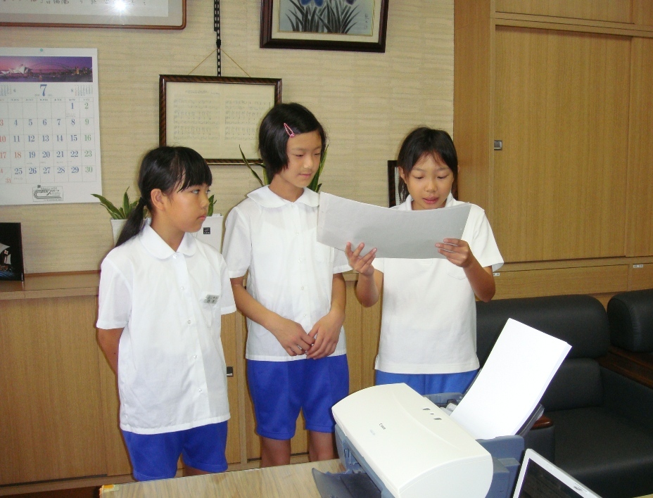 活動報告書の書き方の型を理解し、全体の構成を考え、事実と感想を区別してグループで相談しながらまとめました。それを校長室に、発表しに来てくれました。