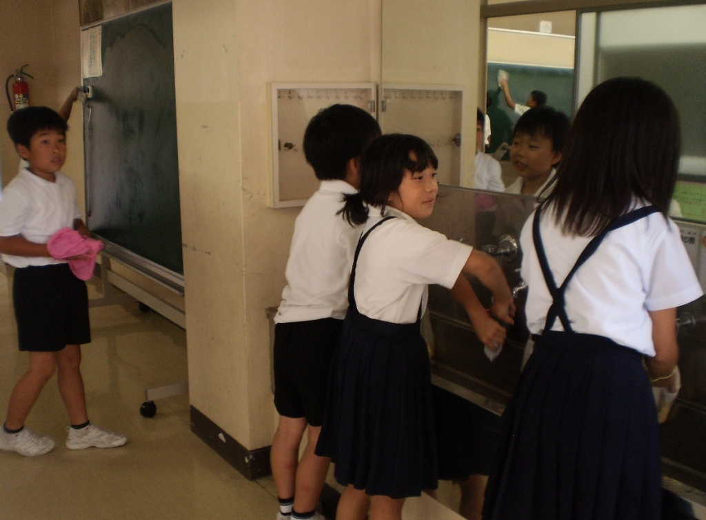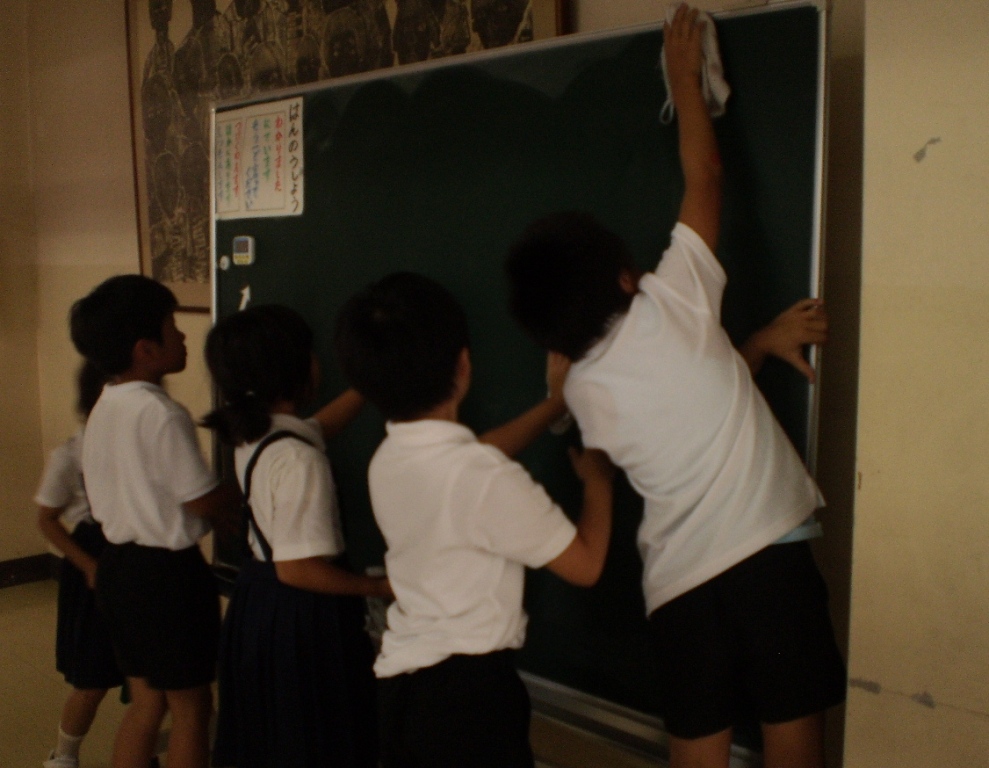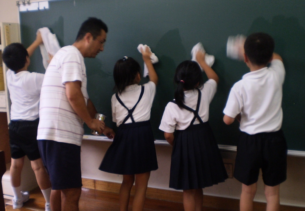 終業式の後は、しばらく使うことのない教室を、みんなで綺麗にしていました。