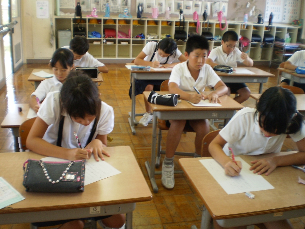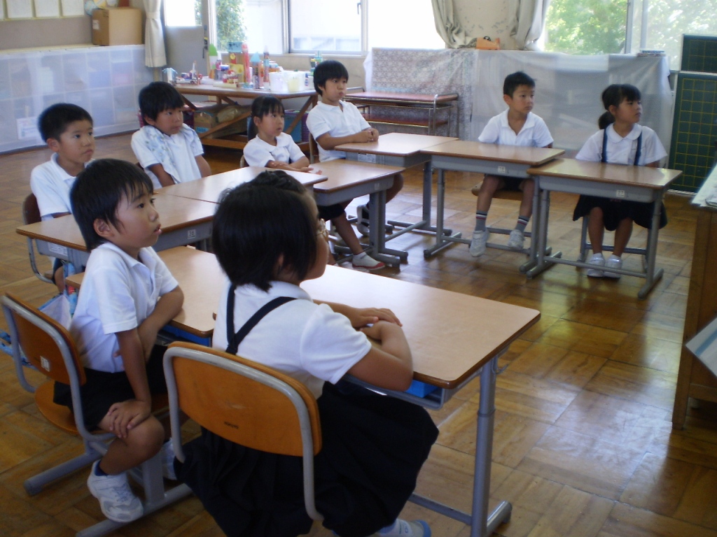 教室では、楽しかった思い出話をしたり、宿題の進み具合を確認したりしていました。