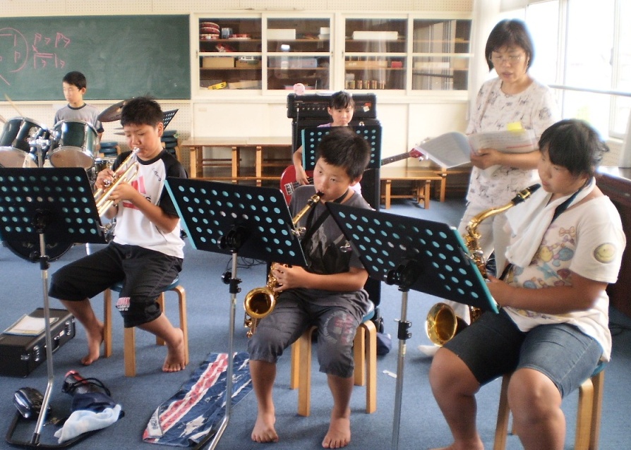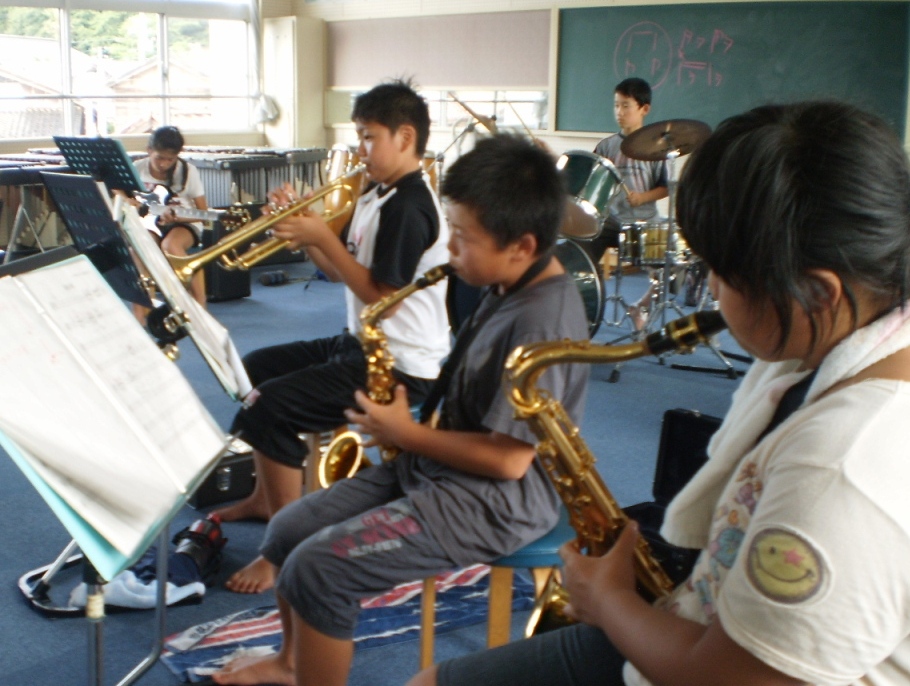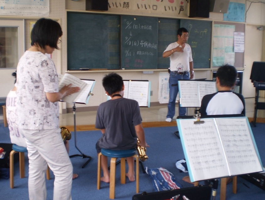 暑さに負けず、真剣に自分のパートをマスターしようと真剣に頑張っていました。