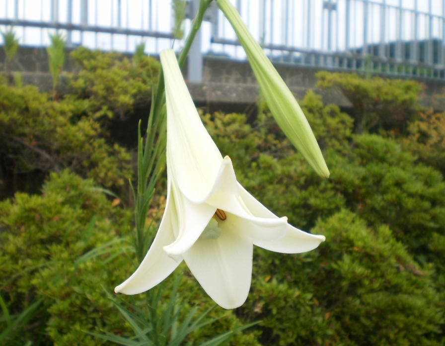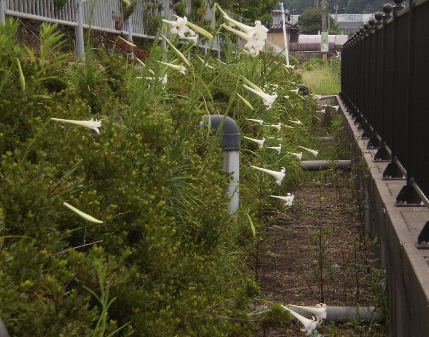 この時期になると、道端のあちこちで白い百合が、咲いているのを見かけます。
