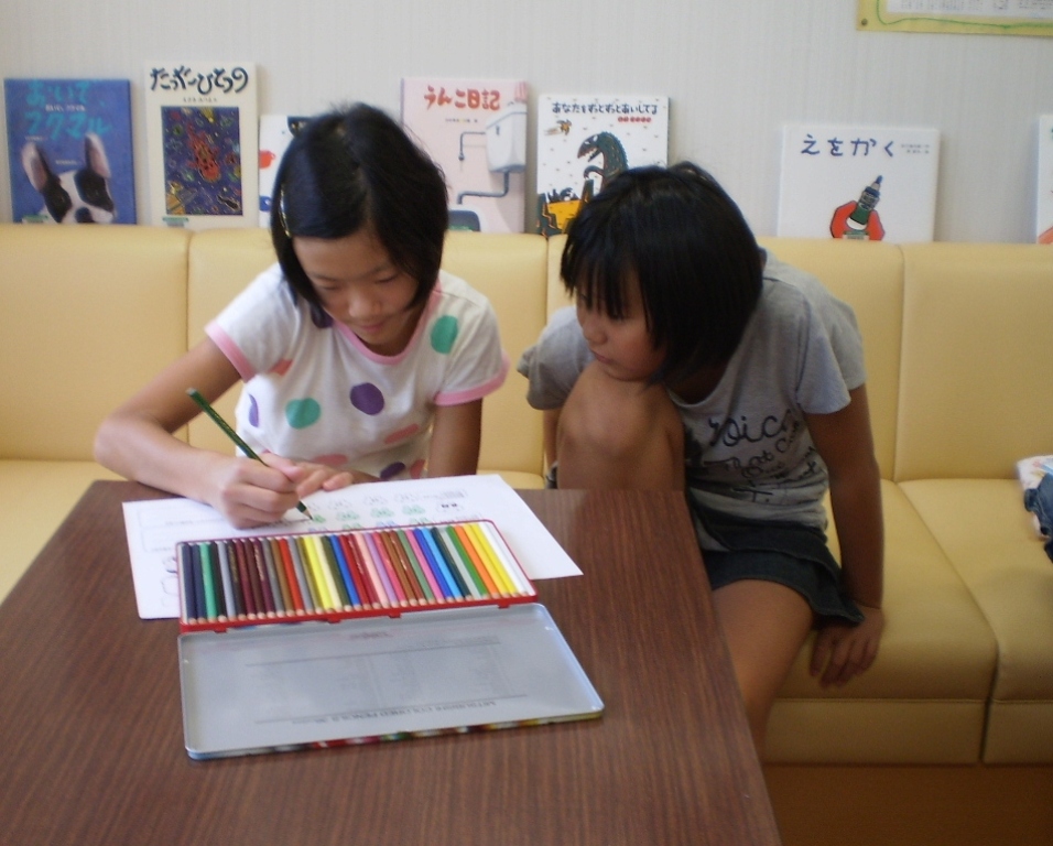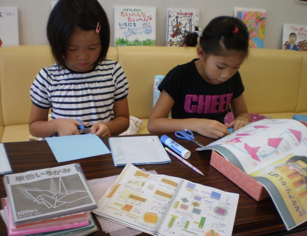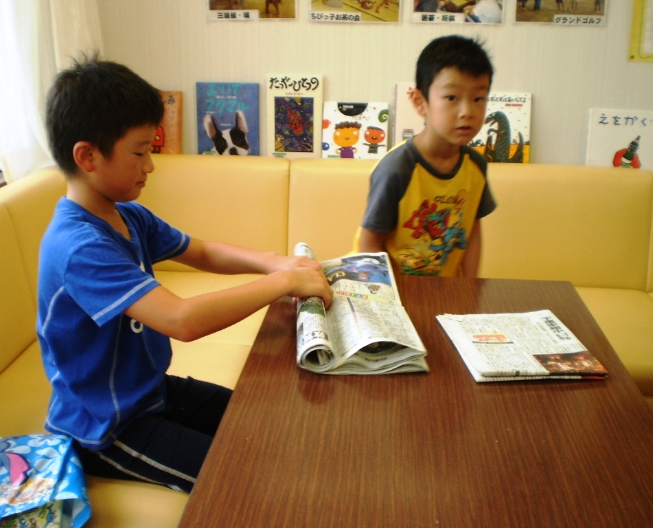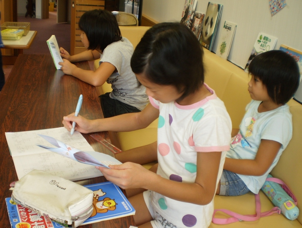 地区会館で「さわやか学習会」が3日間開かれています。9:00から持参したドリルなどで自習し、その後、折り紙、絵本、竹トンボなど色々な道具を利用して楽しく過ごしていました。綺麗な学習室や大広間で友達と楽しい時間を過ごしていました。