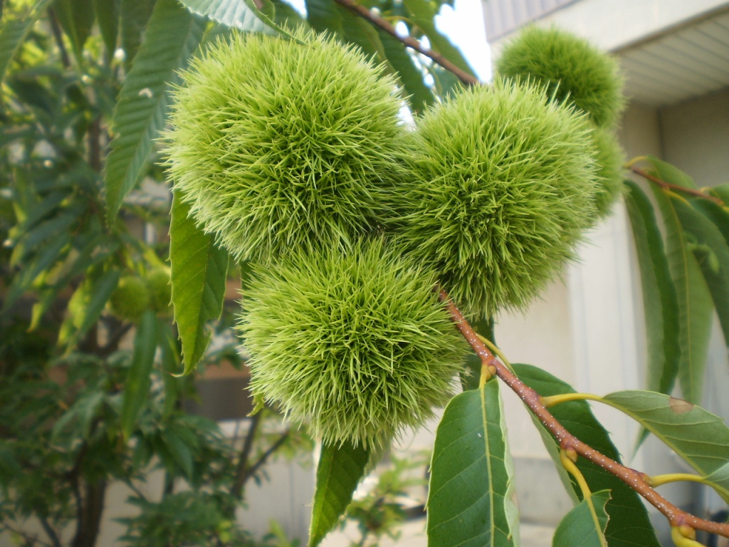 立派な栗の実 金曜日までは緑のイガだったのに