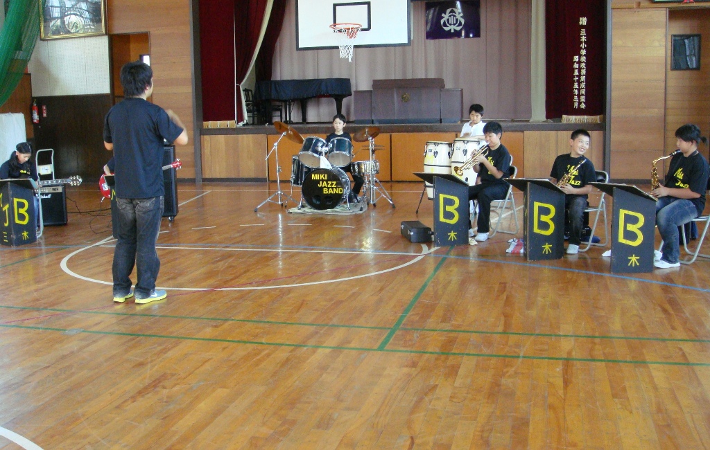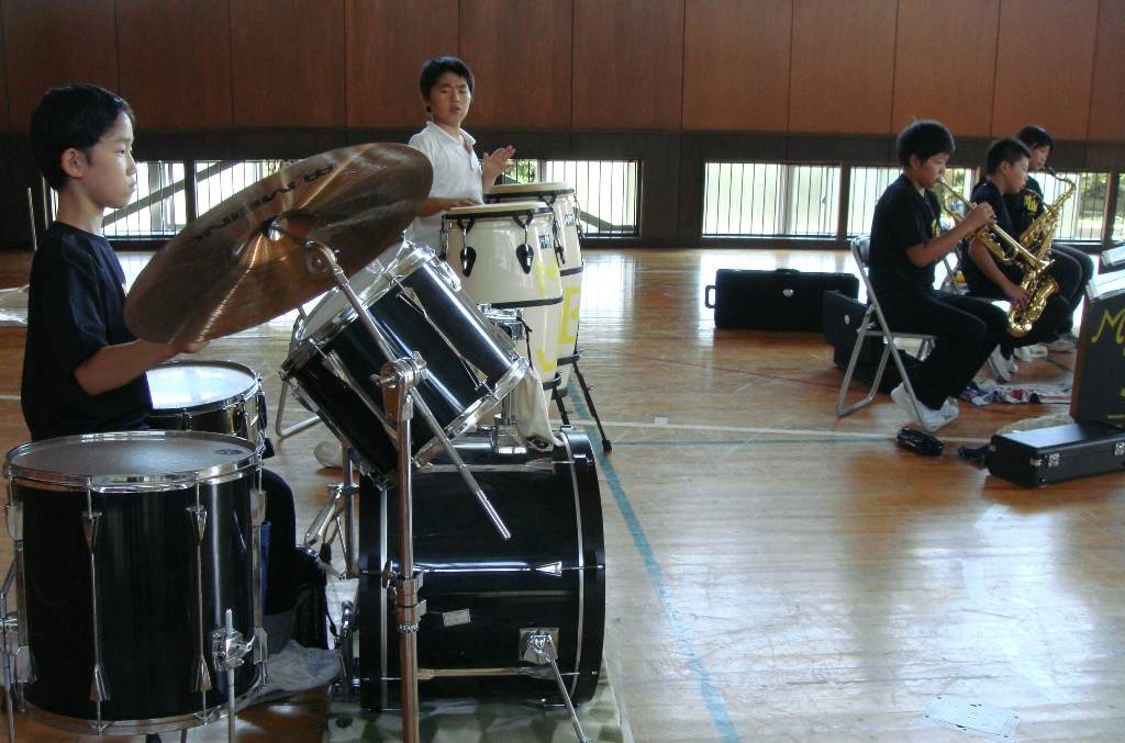 昨日は、体育館で、Tシャツもきて先生方の見守る中演奏のリハーサルをしました。