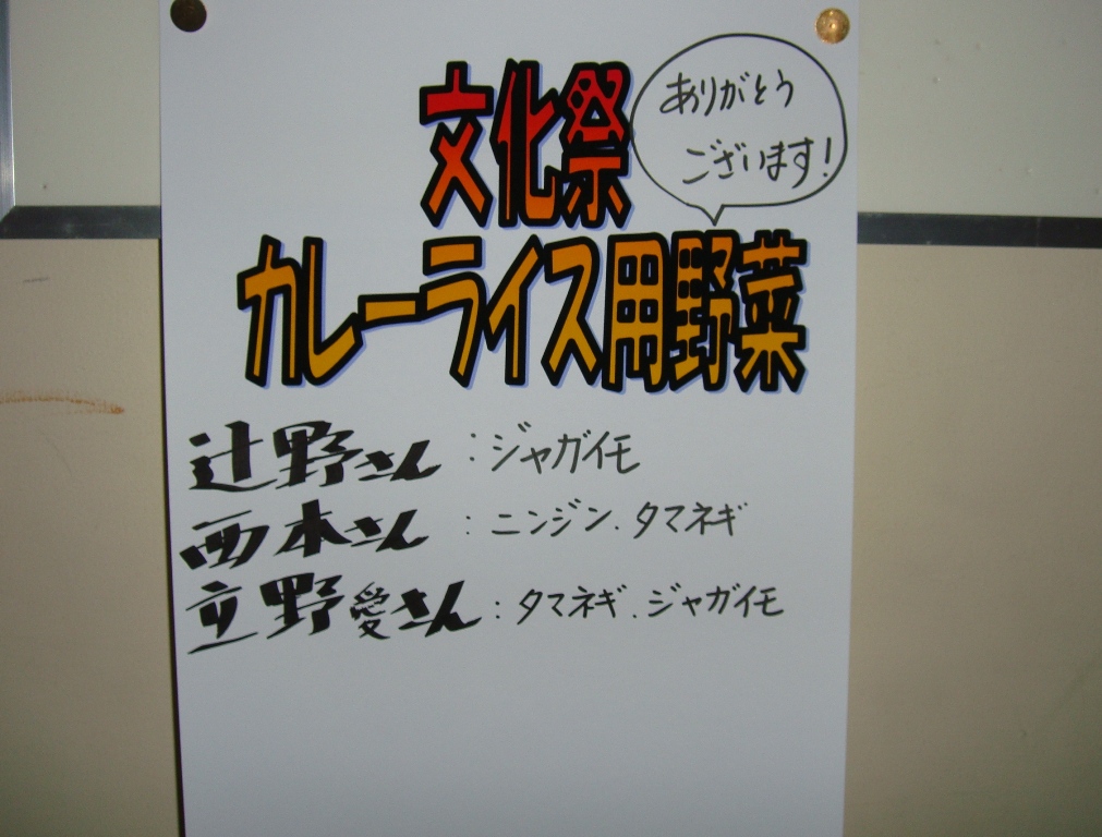 文化祭で出すカレーライスの材料のジャガイモ、人参、玉ねぎの提供をお願いしましたところ、次々と学校に届けられています。大変ありがとうございます。