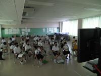 朝学習の時間を使って、テレビ放送で行いました。