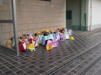 1年生はランドセルをきちんと並べておいていました。これも上級生のよいお手本を見ていたからこそ、
