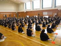1年生を拍手で体育館に迎え入れた後、