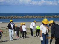 地域の方から「マイクロプラスチック(プラスチックごみの中で、大きさが5ミリ以下のもの)」についてのお話も伺いました。「マイクロプラスチック」を魚やウミガメ、クジラ等の生き物が、えさと間違えて食べてしまい、大きな問題になっているのだそうです。