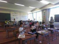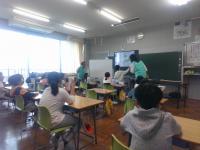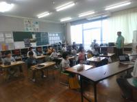 5年生が粟津村おこし推進協議会の菊谷さんに,トキの特徴や生態について教えてもらいました。菊谷さんが実際に粟津地区で撮影したトキの写真をたくさん見せていただきました。無農薬の米作りをしていることも,トキのエサとなるドジョウが育つために必要なことだと分かりました。これから5年生は,「トキ舞うみさき」のためにできることを考えていきます。