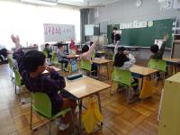 午後からの2時間目、子供たちの様子を見て回ると、どの学年も始業のチャイムからしっかり学習に取り組んでいました。1年生は国語「たぬきの糸車」で本時の課題について考えていました。2年生は生活科で自分の成長を振り返っていました。3年生は外国語活動で「What’s This?」と質問しあっていて、4年生は図工で紙工作に取り組んでいました。5年生は社会科で情報について、6年生は理科で水溶液の性質について学んでいました。みんな、午後からも元気です。