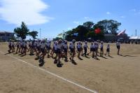 当日は,各班の班長が開会式で宣誓しました。1班の合言葉「以心伝心」,2班の合言葉「一致協力」,3班の合言葉「上下一心」,4班の合言葉「共存共栄」を胸に,58人全員が全力を出し切っていました。