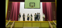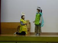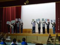 6年生からの出し物では、劇とダンスを披露しました。1年生の時の入学式、2年生の九九の学習、3年生の休み時間、4年生のさんにょもんの劇、5年生の漢字ビンゴパーフェクトなど、過去にタイムスリップして、その時の思い出を辿りながら、現在までに至る成長を表現しました。劇の後半には、1~5年生や先生方、家族のみんなへの感謝の気持ちを述べていました。感謝の気持ちと震災復興に向けて頑張ろうという気持ちを込めて、「ココロの地図」の曲に合わせて、ダンスを披露しました。会場に響き渡るほどの手拍子の中、6年生は一生懸命に踊っていました。