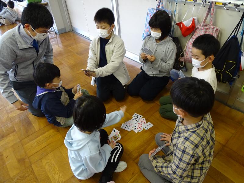 遠足を迎えるにあたって,高学年が想像力を働かせ,班のために遊びを企画・運営しました。1~4年生は素直に「楽しかった。」と話したり,笑顔で遊んだりしていました。下級生の笑顔を見て,高学年は達成感を感じることができたのではないかと思います。これからも,縦割り班の中でリーダーシップを発揮してほしいと思います。下級生は,高学年の思いに応え,互いに支え合っていけたらいいですね。