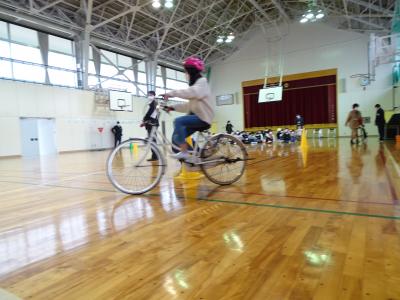 4~6年生は,自転車の安全な乗り方を学んだり,交差点を渡ったりしました。自転車にまつわるクイズを通して,「自転車は,軽車両に分類され,歩行者と同じ扱いではない事」など,自転車に乗る上で知っておくべきことを学ぶこともできました。自転車による体験では,「信号がなくても,交差点で止まって左右の状況を確認する事」ができていました。