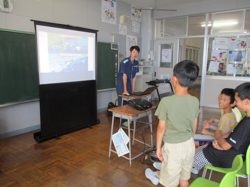 今日の3~4時間目に珠洲警察署や三崎駐在所,三崎町防犯パトロール隊の方々をお招きし,交通安全教室とパトロール隊対面式を行いました。