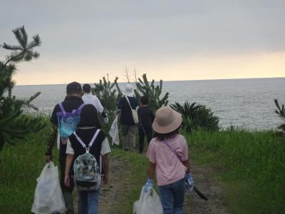 夕方、学校近くの作品の前を通りました。月あかりの中で幻想的な小山真徳さんの"最涯の漂着神”に、シャッターを切りました。子どもたちも身近な芸術に触れて感性が磨かれていくと感じます。(粟津の海岸にて)