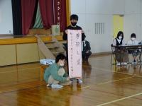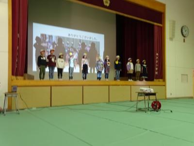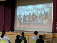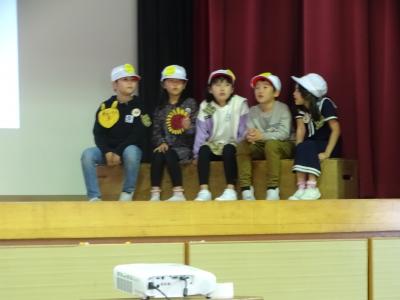 プログラムの中には、6年生にまつわるクイズをしたり、全校でフルーツバスケットをしたりしました。6年生だけでなく、1~5年生も楽しく遊んでいて、和気あいあいとした雰囲気でした。5年生が自作したスライドショーには、全校が釘付けでした。1~5年生が作ったプレゼントも6年生に手渡され、「今までありがとう。中学校へ行っても頑張ってね。」など、心温まる言葉を届けていました。