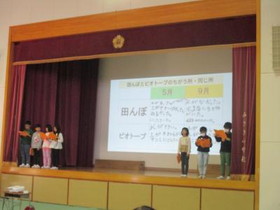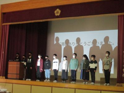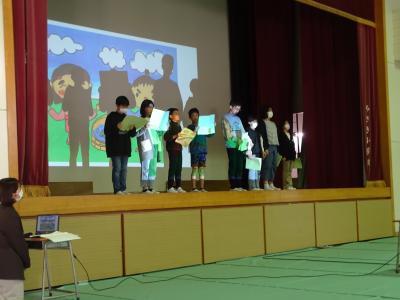 今年度最後の児童集会で,各委員会の委員長から後期のふり返りがありました。それぞれに頑張ってきたことと来年度に向けての思いを伝えてくれました。代表として引っ張ってくれた6年生のみなさん,ありがとうございました。
