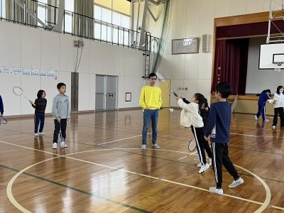 まずは、昼食後すぐの昼休み、体育館には、子供たちの歓声が響いています。1~6年生の中で体育館で遊びたい子供たちが集まり、それぞれ場所の譲り合いながら、ドッチボールやバトミントン、フリスビーで楽しく遊んでいました。学校支援EARTH(兵庫県の震災・学校支援チーム)の先生やみさき小の先生方も一緒に遊んでくれていてさらに盛り上がっていました。