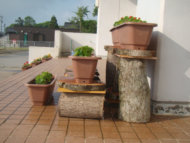玄関前のプランターの花台に姿を変えました。もうしばらくしたら次のタブノキ活用