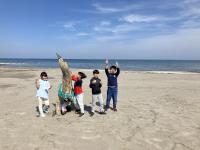 今日は、砂浜をきれいにして下さった方々へのお礼の気持ちと、また、運動会でも踊るみさき小の伝統演舞「南中ソーラン」の総仕上げとして、学校前の砂浜でよさこいを踊りました。砂浜をきれいにしてくださった寺家地区の方々や、みさき小グラウンドの仮設住宅にお住いの方々など、地域の方々にみさきっ子の南中ソーランを見てもらうことができました。
