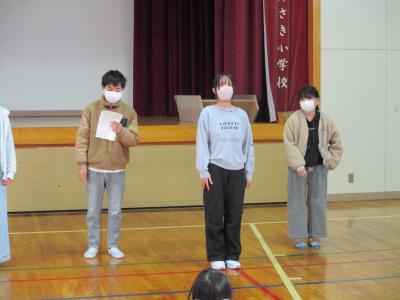 今年度最後の児童集会で,各委員会の委員長から後期のふり返りがありました。それぞれに頑張ってきたことと来年度に向けての思いを伝えてくれました。代表として引っ張ってくれた6年生のみなさん,ありがとうございました。