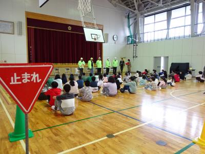 1~3年生は信号交差点の渡り方、4~6年生は自転車の乗り方について教えてもらいました。