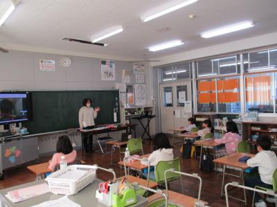 午後からの2時間目、子供たちの様子を見て回ると、どの学年も始業のチャイムからしっかり学習に取り組んでいました。1年生は国語「たぬきの糸車」で本時の課題について考えていました。2年生は生活科で自分の成長を振り返っていました。3年生は外国語活動で「What’s This?」と質問しあっていて、4年生は図工で紙工作に取り組んでいました。5年生は社会科で情報について、6年生は理科で水溶液の性質について学んでいました。みんな、午後からも元気です。