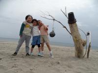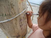 みさき小の美しい浜でのミニ芸術祭。日々作品は変化していきます。