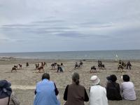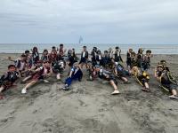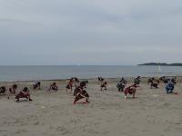 今日は、砂浜をきれいにして下さった方々へのお礼の気持ちと、また、運動会でも踊るみさき小の伝統演舞「南中ソーラン」の総仕上げとして、学校前の砂浜でよさこいを踊りました。砂浜をきれいにしてくださった寺家地区の方々や、みさき小グラウンドの仮設住宅にお住いの方々など、地域の方々にみさきっ子の南中ソーランを見てもらうことができました。