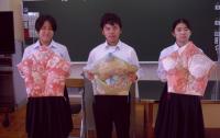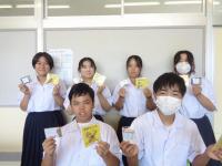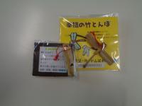 佐賀県にお住いの野木様より、竹細工で一つ一つ手作りされた「幸福の竹とんぼ」と「しあわせ呼子」が届きました。全校生徒の数と共に応援メッセージも添えられていました。大切に近くに飾ります。ありがとうございました。