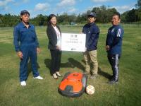 三崎中学校の仮設グラウンドに天然芝を植えてから3か月が過ぎ、9月23日には体育祭も無事に終えることができました。そして、先日10月9日(木)にはご寄贈いただいた「自動芝管理器」が届き、早速芝刈りをしています。設定した長さに芝を整え、設定した時間に稼働する優れものです。