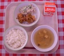 今日はからあげにかかっているねぎについてのお話です。ねぎは日本書紀にも書かれているほど日本にはなじみの深い野菜です。またあの「ツンとした匂い」が特徴的ですが、この匂いが「邪気を払う」ともいわれていたそうです。ねぎは疲労回復や免疫力を高める効果もあります。今日の給食を食べて、今日も一日元気に過ごしましょう。